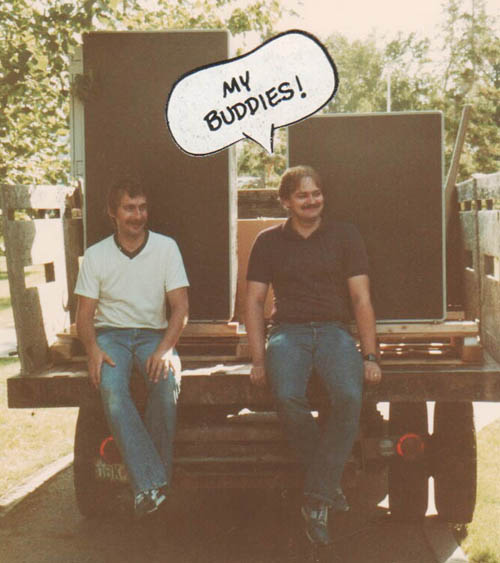 Moving out of the Commerce building (1986) [Front: Dave Bocking and Darwyn Peachey, Rear: skorpio] |