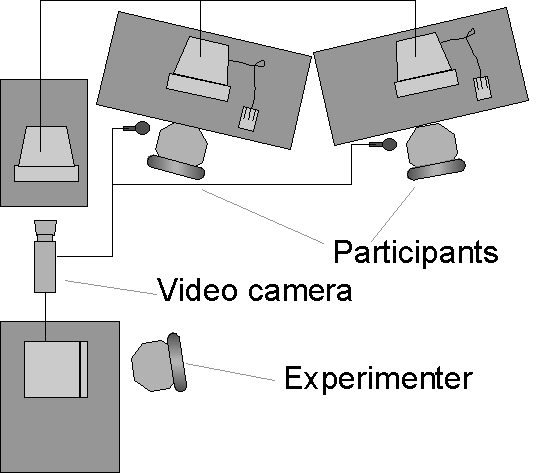 Participants ranged in age from 19 to 48 years, and averaged 27.4 years. Participants were assigned a partner for the study, either by choosing one themselves or by random assignment. Participants had limited prior experience with groupware. The only groupware systems that participants used more than once per week were multi-player games (eight participants), and email systems and web browsers (all participants). None of the participants had previously seen the groupware system used in the study.