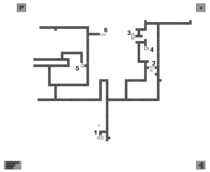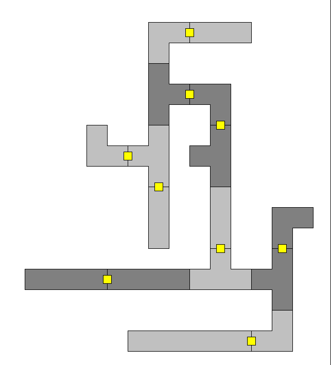 The Direct task involves giving workspace directions. One participant was asked to verbally guide the other through adding six specific pipe sections to an existing network. The director had a map showing which pieces were to be added, and where they were to be added, but was not allowed to move around in the workspace. The actor did the work, following the directors instructions. The director did not see their main view during this task, so the only visual feedback that they received of the actors progress was from the miniature view. The workspace map for the first directing task is shown in Figure 5; the pieces to be added are shown in grey.