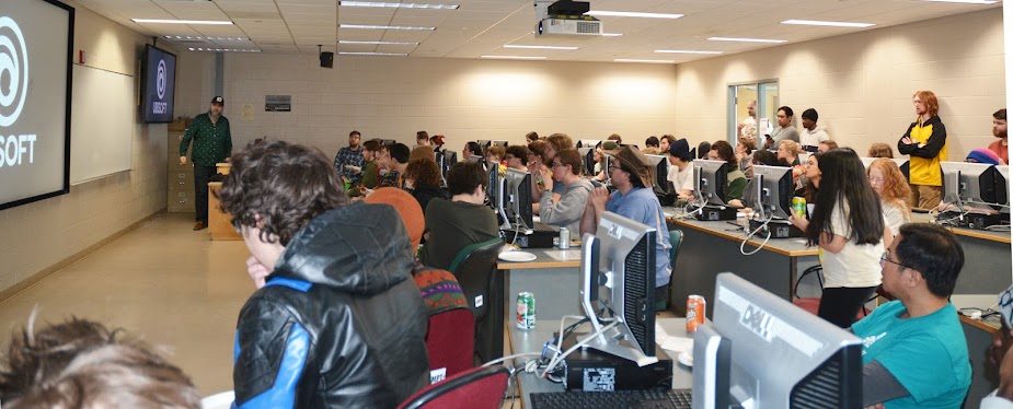 The event was free for students, and the USask Computer Science department supplied lab computers and wifi, making it accessible to anyone with an idea. No prior experience was required as the jam welcomes a mix of working developers and first-time creators alike. Saturday included a guest presentation by Kurtis Wiebe on narrative and game design, and both days featured pizza lunches. The weekend closed with an awards ceremony and an open showcase where friends and family could play through all 43 submitted games.